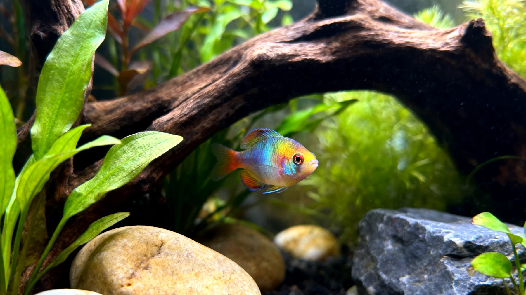 Die Anzahl der Versteckmöglichkeiten sollte die Anzahl der Fische übersteigen. Rivalisierende Männchen brauchen eigene Territorien, schwächere Tiere benötigen Fluchtorte. Dabei ist Vielfalt entscheidend: Manche Arten bevorzugen enge Spalten, andere größere Höhlen. Dichte Pflanzendickichte bieten anderen Arten den gewünschten Sichtschutz, ohne sie einzuengen. Eine Umgebung mit ausreichenden Versteckmöglichkeiten trägt nachweislich zum Wohlbefinden bei und reduziert Stresssymptome.